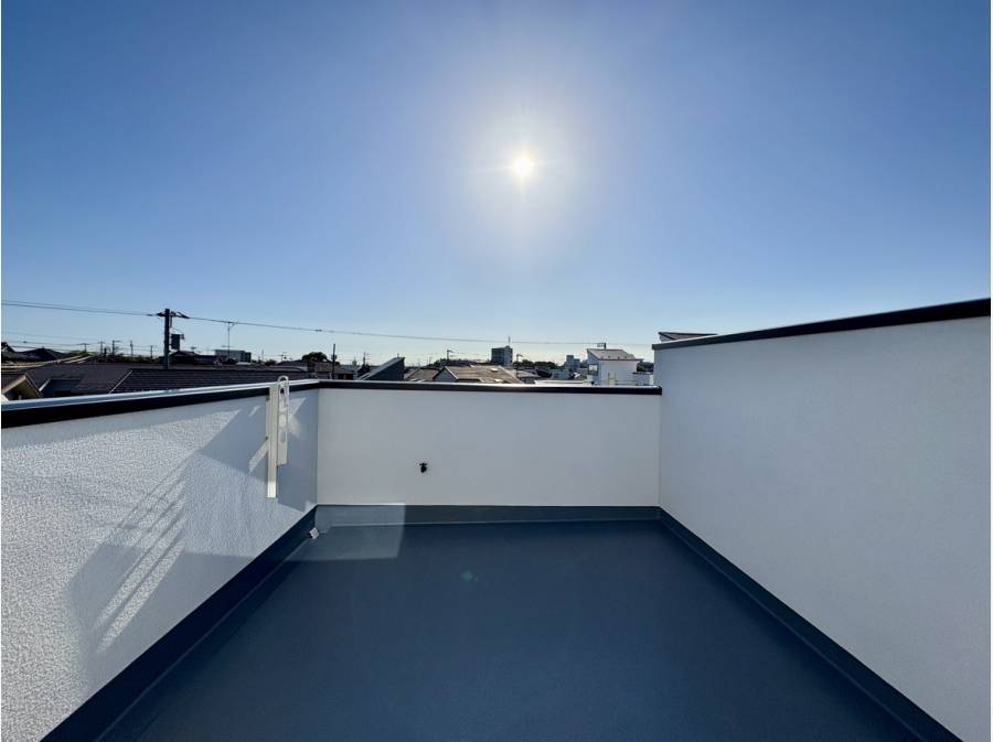 約9帖の広いルーフバルコニーには水栓もあるので、アウトドアダイニングやプールも楽しめそうです