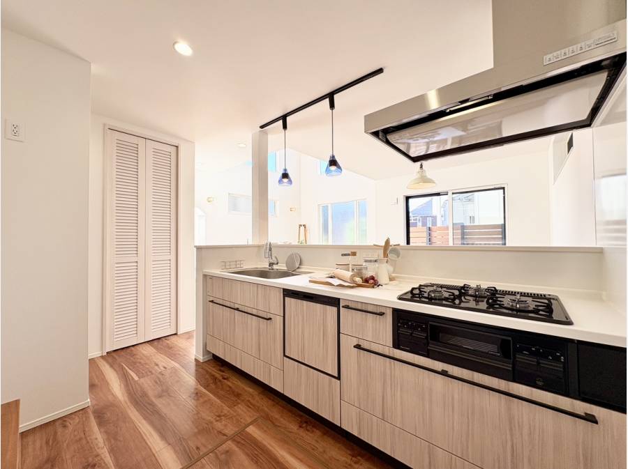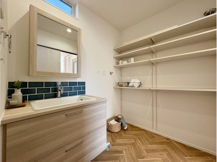 玄関やパウダールーム、キッチンにも収納スペースを設けた暮らしやすいお住まい