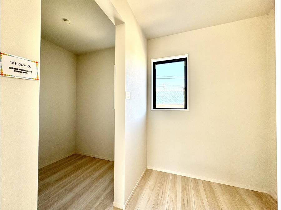 収納面も非常に充実しており、大型のウォークインクローゼット(WIC)やキッチン横のパントリーに加え、多目的に使えるフリースペースを配置。