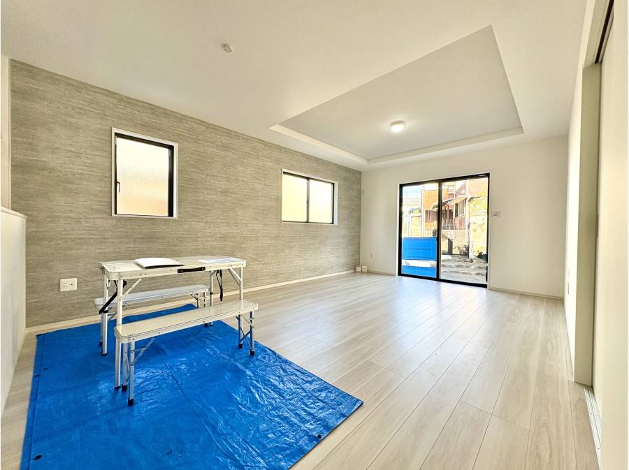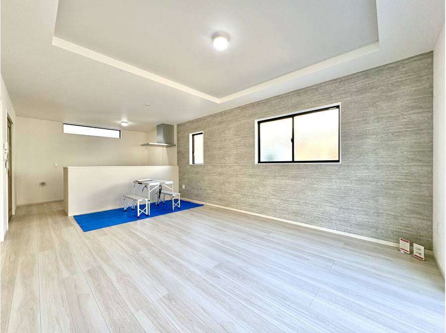 折上天井が魅力のLDK。温水式床暖房やWIC、フリースペースが充実した設計士こだわりの4LDK。
