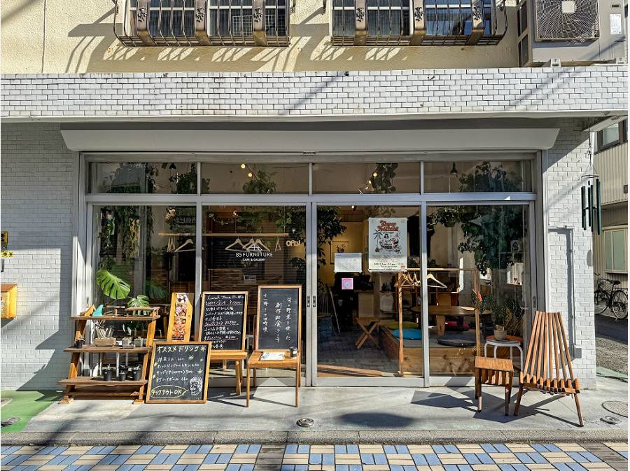 駅を出ますと、波模様のブルータイルが美しい通りに、様々なお店が軒を連ねます。