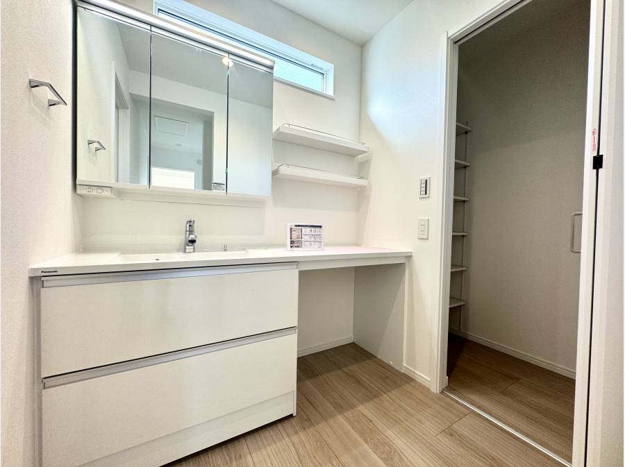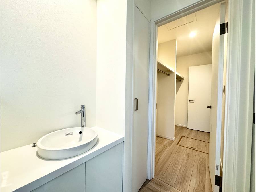 忙しい朝の準備で混み合わないゆとりのパウダールーム
