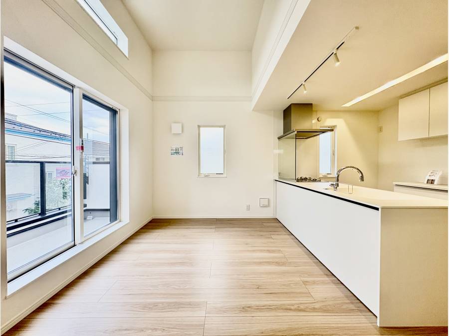 ・広々としたLDKに繋がるワイドバルコニー付き