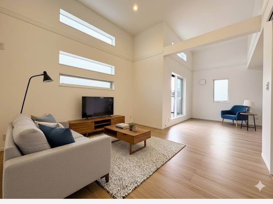 辻堂駅徒歩18分、白を基調とした高天井LDKで湘南の開放的な暮らしを実現。
