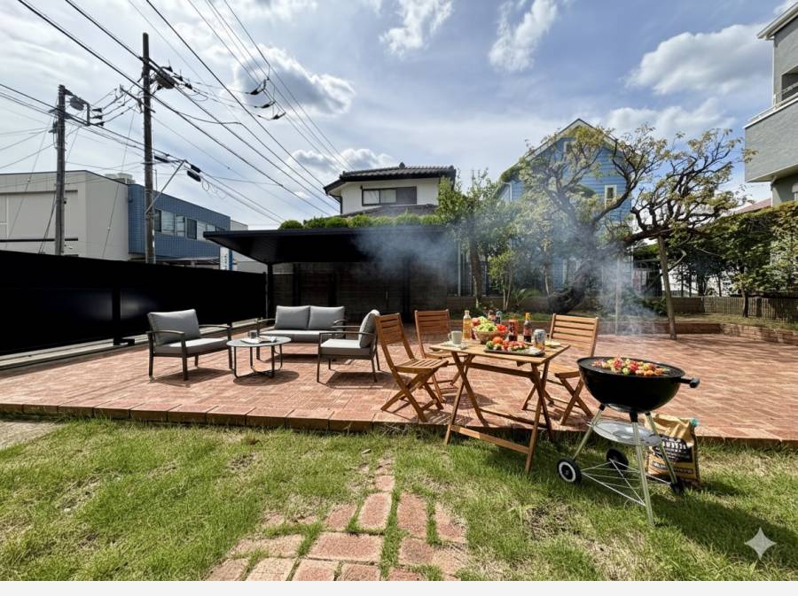 最大で4台の車を駐車できるスペースは、車を停めるだけではなく、ゲストを招いてのBBQや趣味の空間としても活用可能です。
