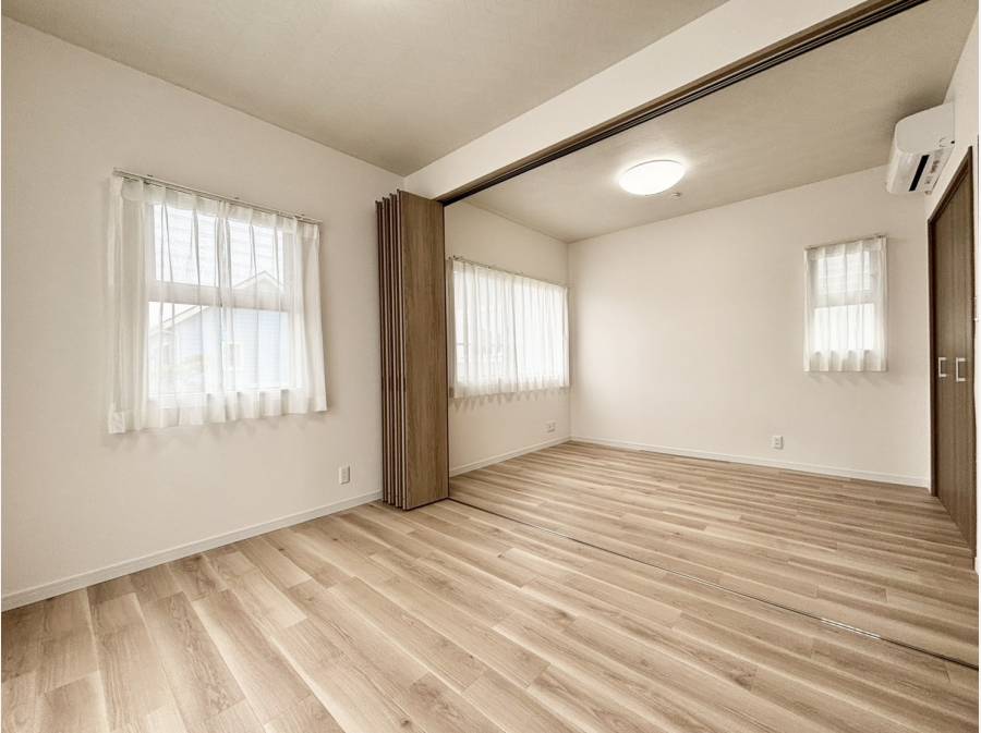 建物はRC構造で作られており、広々としたLDKのプランでございます。約17.1帖のLDKと約13.3帖の洋室はつなげて使うことも可能です。