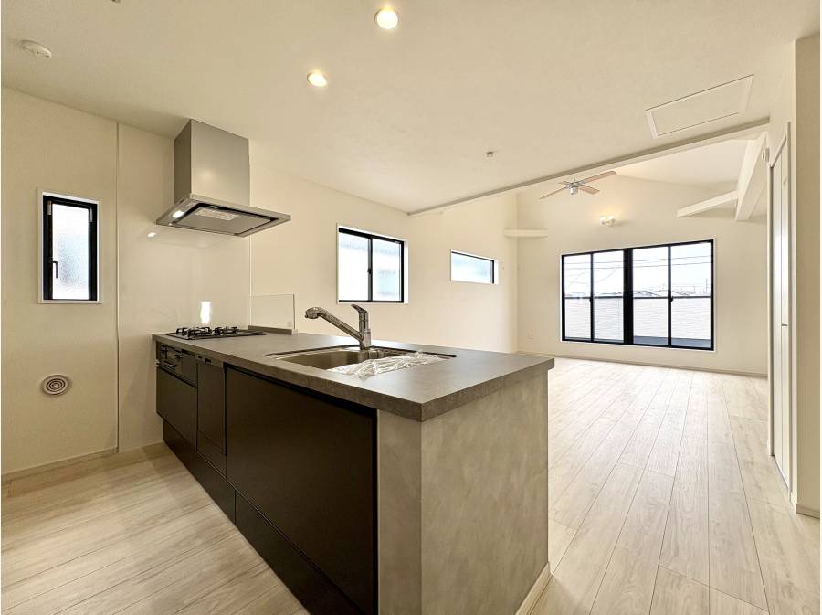 陽光が隅々まで降り注ぐ明るいLDKは、家族が自然と集まる心地よい空間を実現。