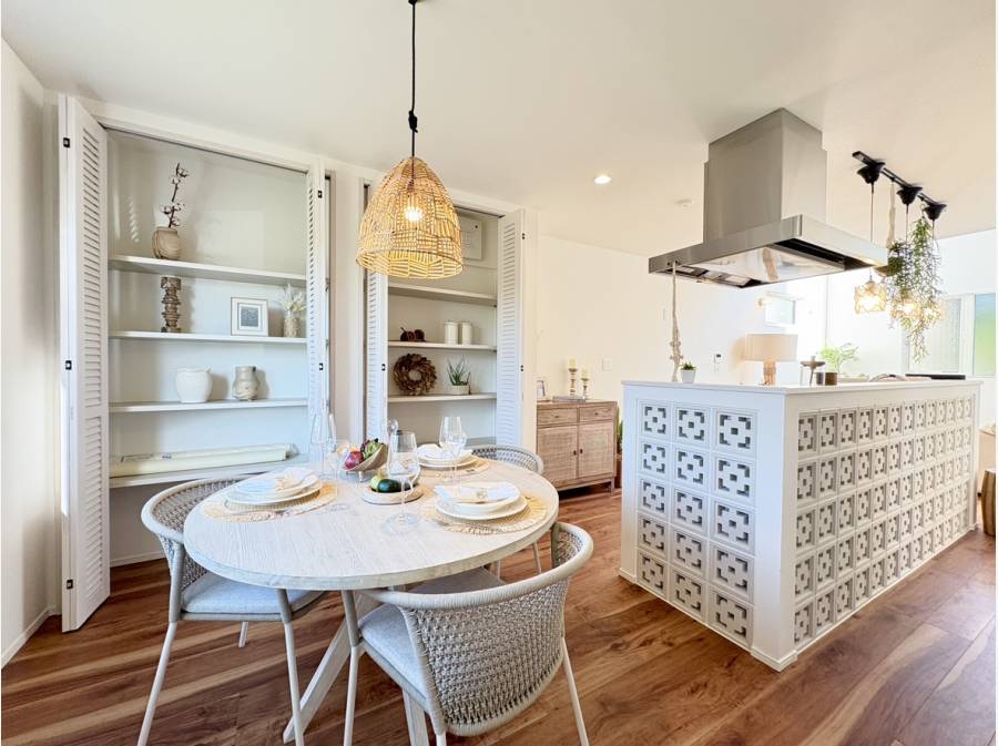 室内にも花ブロックやルーバー建具、シーリングファンやマリンランプなどリゾートを感じるこだわりの仕様となっております。