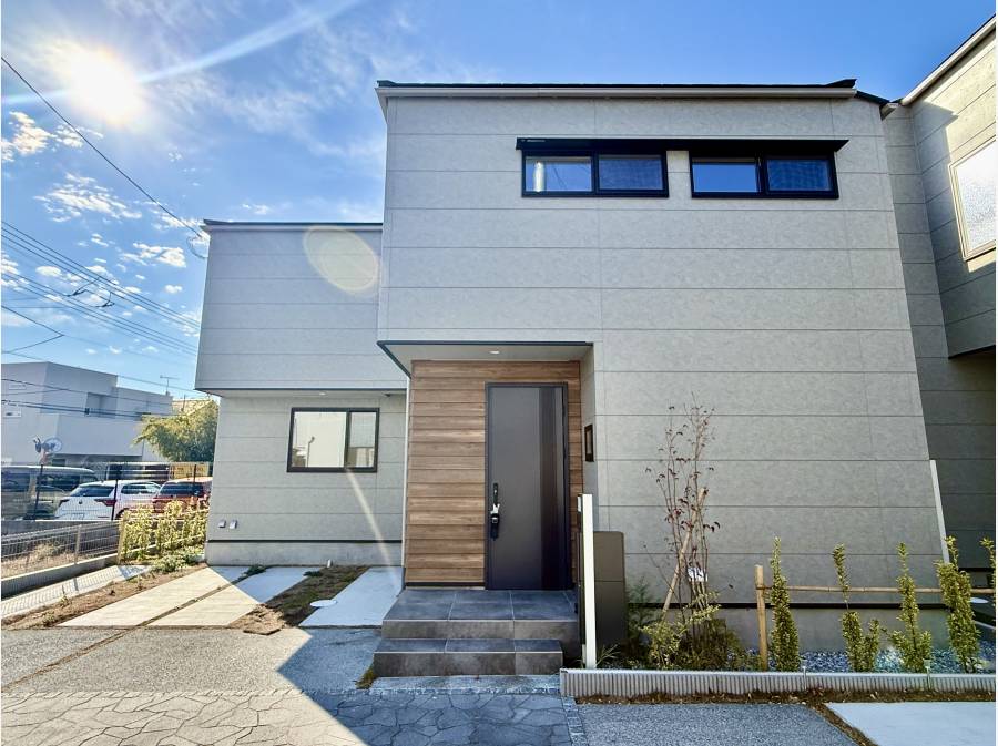 大通りの喧騒から少し離れた場所に、落ち着いた街並みが広がる静かな住宅街。そこに、ゆとりある敷地を活かした新築邸宅が誕生しました。斜め向かいにドラッグストアがあり、静けさと利便性を兼ね備えた魅力的な立地です。