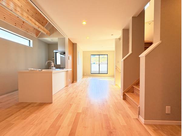 2階のLDKは約16.5帖の広さを確保し、吹抜天井を取り入れることで明るさと開放感を感じられる空間に仕上げています。