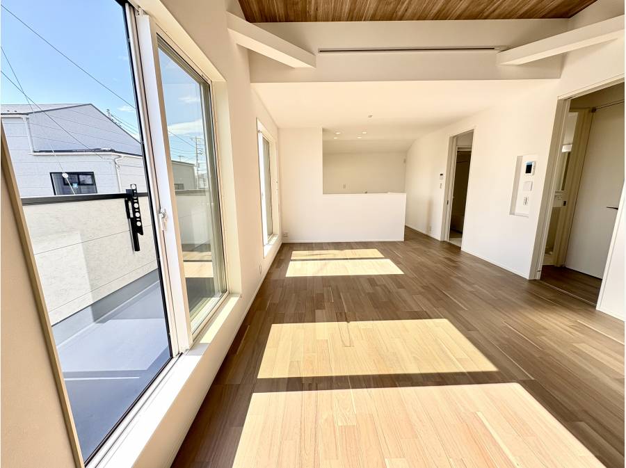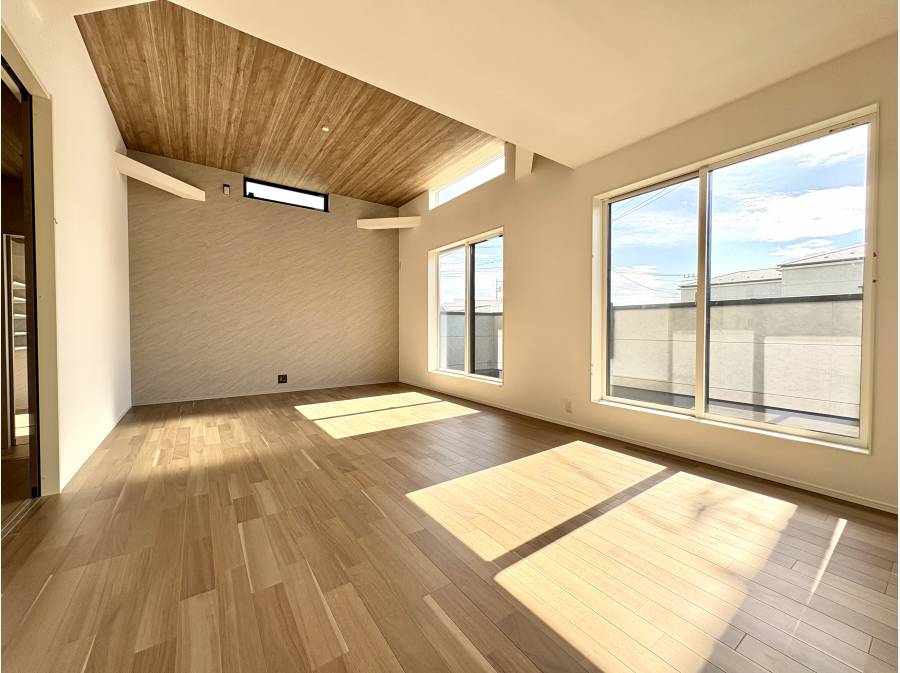 リビングは約18帖の高天井、南西向きのバルコニーからは光がたくさん入り、心地の良い時間がお過ごしいただけます。