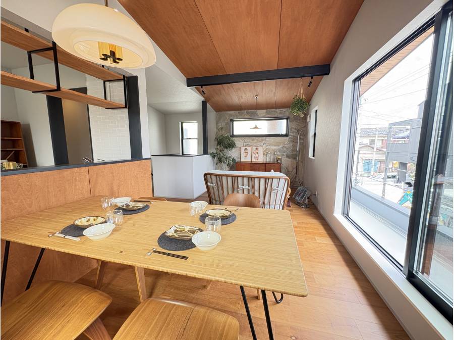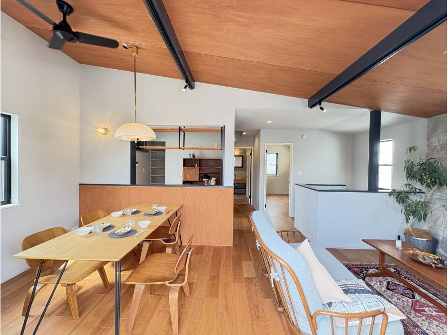 2階には約17.4帖の横型リビングは勾配天井になっており、開放感が広がります。