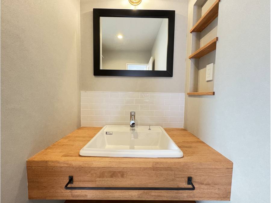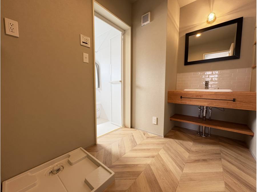 キッチンにはタイル付きのカウンターキッチン、パントリー、サニタリールームには造作洗面台など細かいところまで拘りを感じる邸宅です。