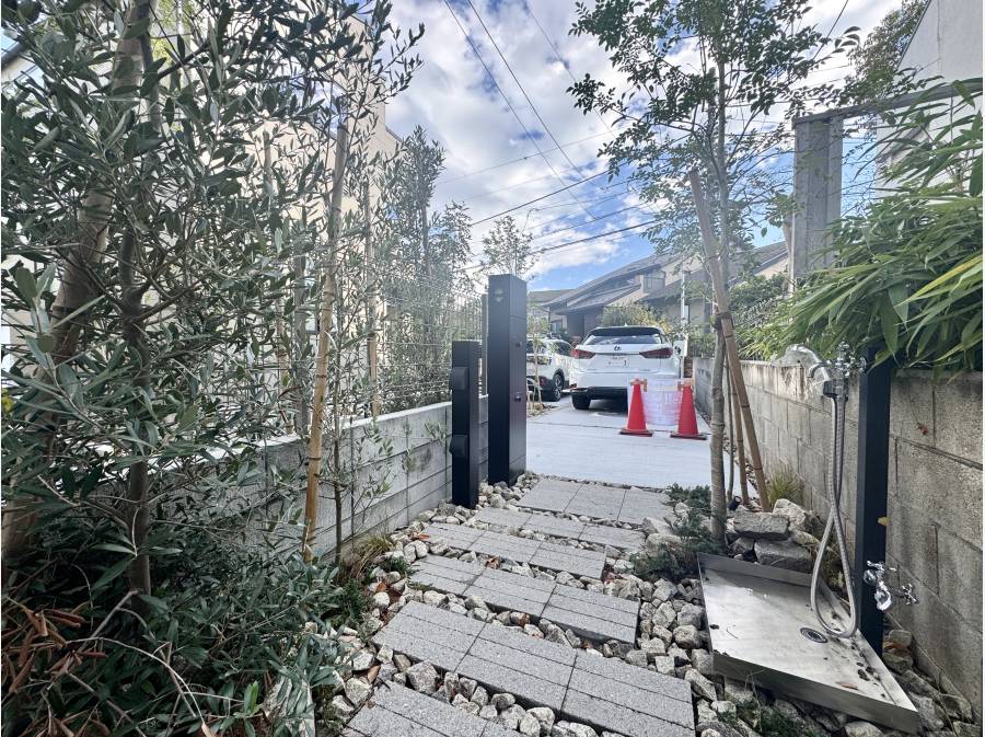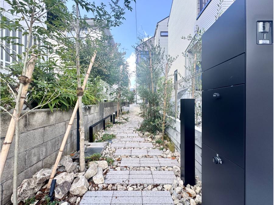我が家へのお帰りは緑豊かな植栽のアプローチがお出迎え