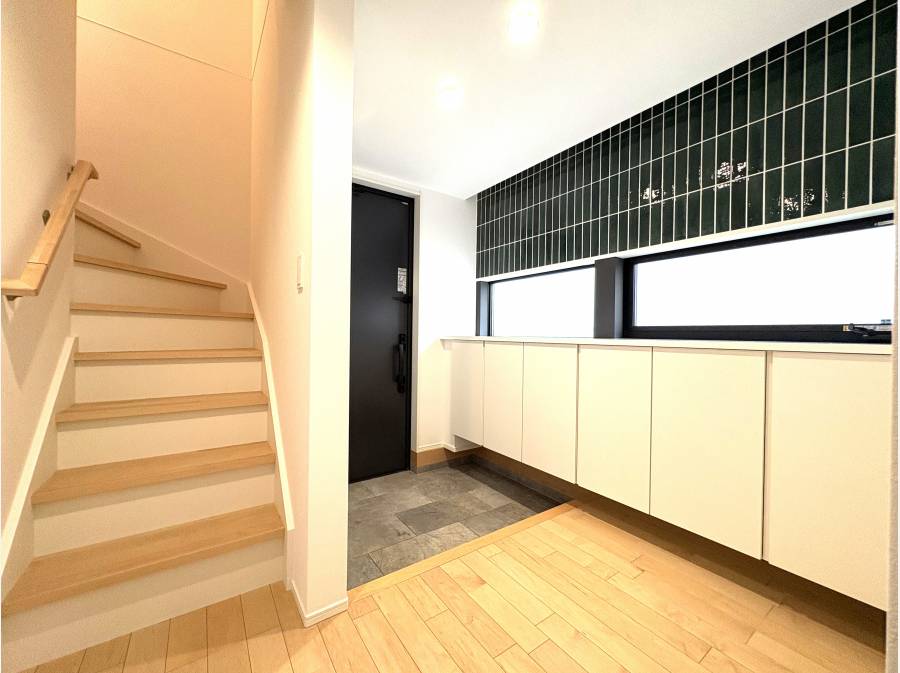 玄関を開けると広々とした玄関ホール、タイル調をアクセントにしたシューズクローゼットも広々☆