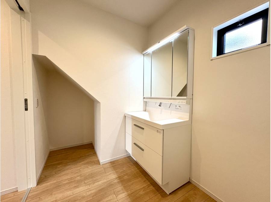 1階のLDKは約20帖を超える広さがあり、家族がそれぞれ好きな時間を過ごしつつも、同じ空間にいる安心感をもたらします。さらに、リビングダイニングには床暖房が備え付けられており、季節を問わず快適に過ごせる工夫がされています。また、玄関近くにバスルームを配置した間取りは、海辺エリアならではの実用性を考慮した設計で、外から戻った際にもすぐにリフレッシュできる便利さを実感できます。