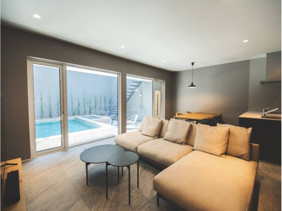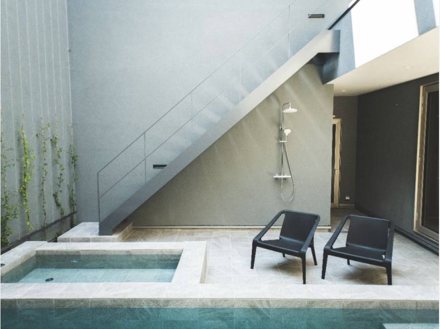 温水プールや露天風呂、フィンランドサウナがあるプライベート感あふれるお庭が魅力です。
