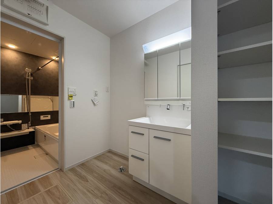 玄関にはシューズインクロークと収納スペースがあり、日々の暮らしが快適に過ごせる工夫が施されています。四面採光のLDKは、自然光がたっぷり差し込む明るく心地よい空間を実現しています。
