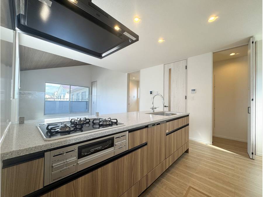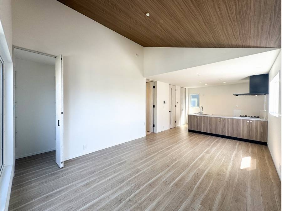 LDKは約18帖の広さがあり、板張りの勾配天井がリビングをより広々と見せてくれます。