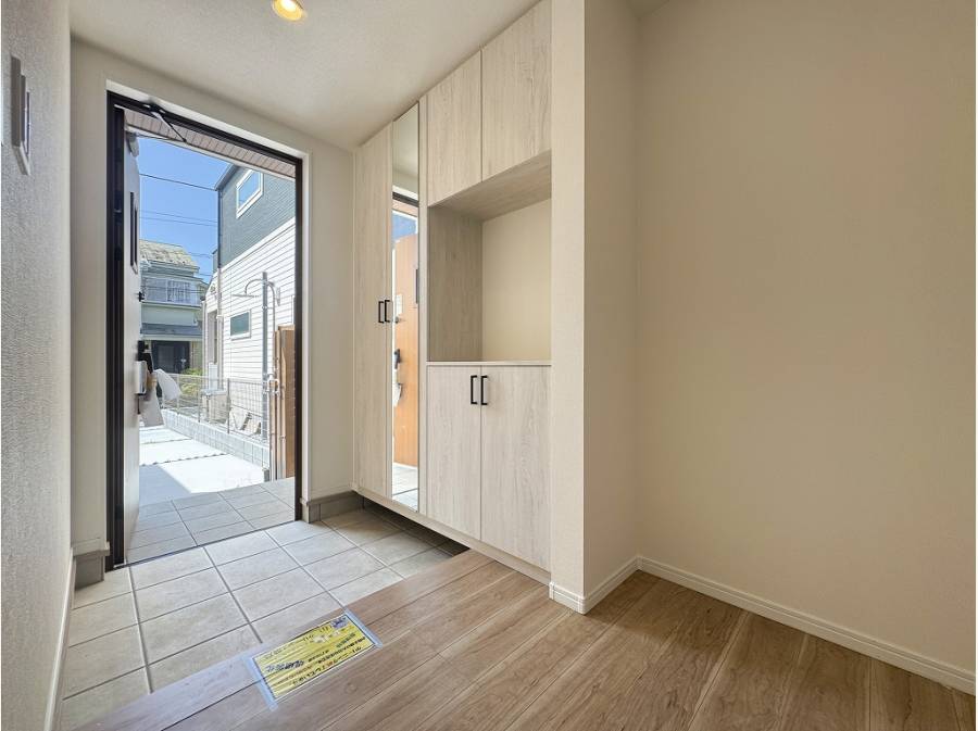 玄関ホールには嬉しいウェルカムシンクが寄り添い、階段下を活用した収納も何かと重宝するでしょう。