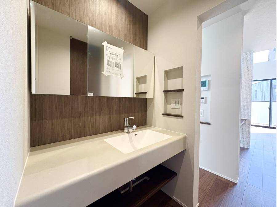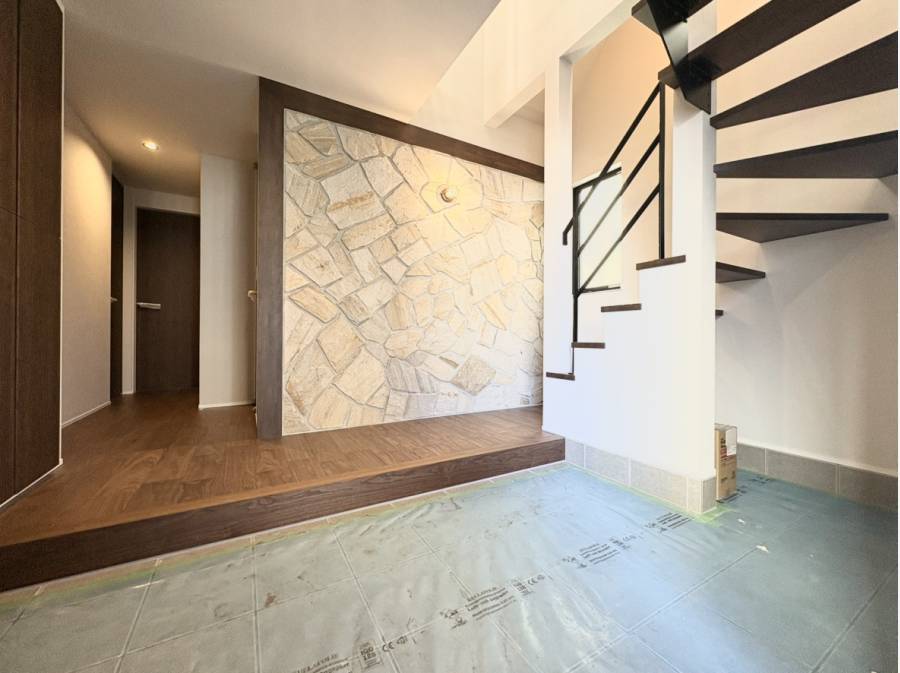 また、石張りの玄関エントランスやウッドバルコニー、広めの玄関ポーチなど、随所にこだわりのデザインが光ります。完成済みのため、いつでもご見学いただけます。お気軽にお問い合わせください!