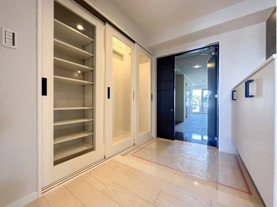 玄関や居室の収納スペースはガラス扉になっており、インテリアの一部のような魅せる収納を愉しめそうですね。