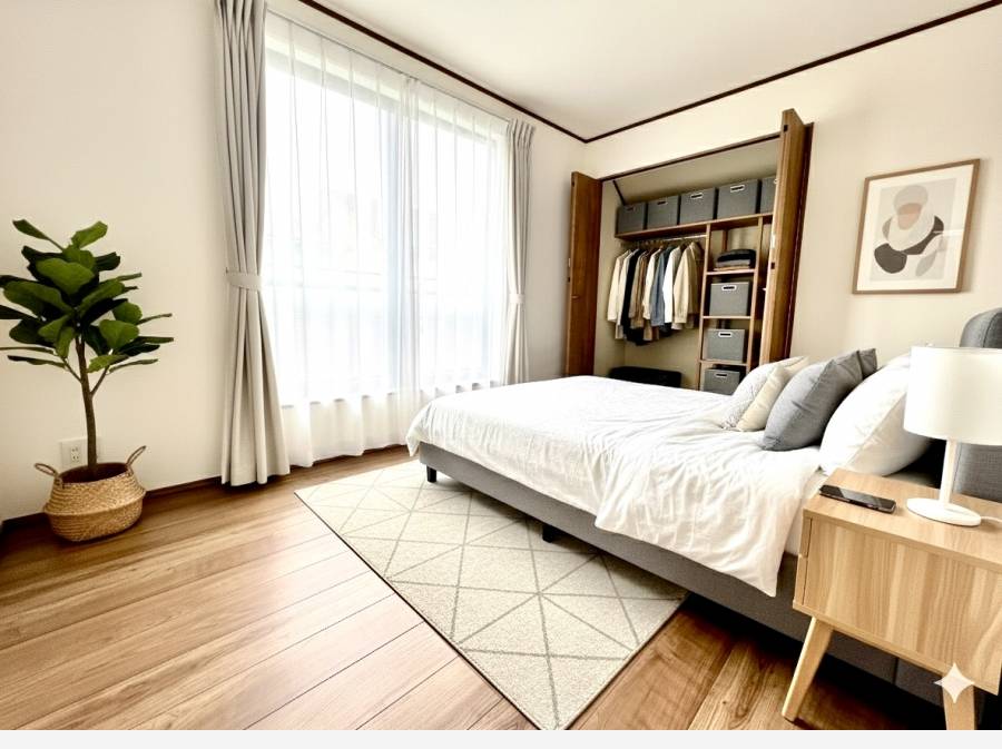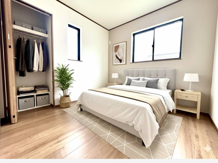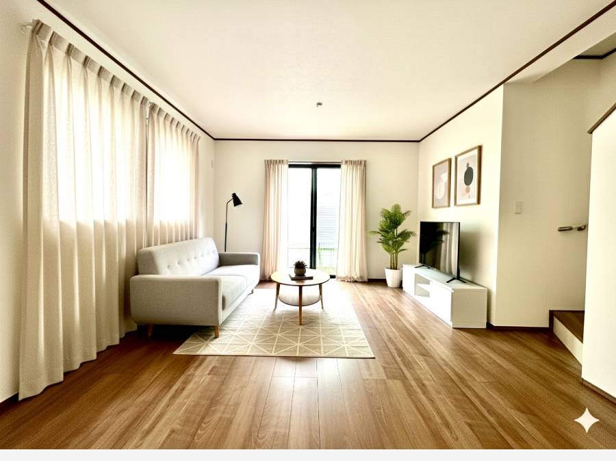 各お部屋に生成AIで家具・家電の配置をしたので、各お部屋のイメージとしてご参考までにご覧ください!