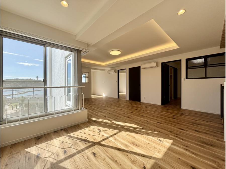江ノ島と相模湾を一望できる100㎡超の広々空間、ホテルのような内装で海辺の暮らしを日常に。