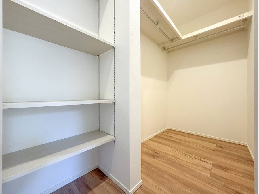 大開口のバルコニーや大きなウォークインクローゼット、リビング床暖房などデザインだけでなく設備仕様も充実。
