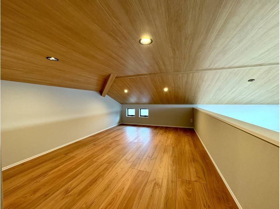 木目の美しい板張り天井が印象的なリビング上部には、ゆとりのロフト空間を設けました。