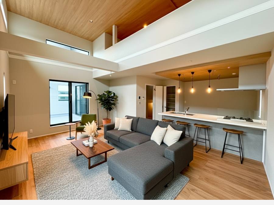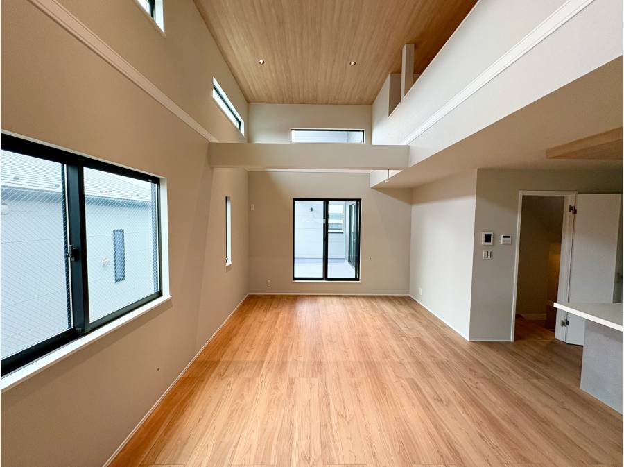 18.1帖の広々としたLDKは、吹抜けが設けられているため、さらに開放的で贅沢な空間を演出。陽光が差し込むリビングは、家族が自然と集まる心地よい場所となるでしょう。
