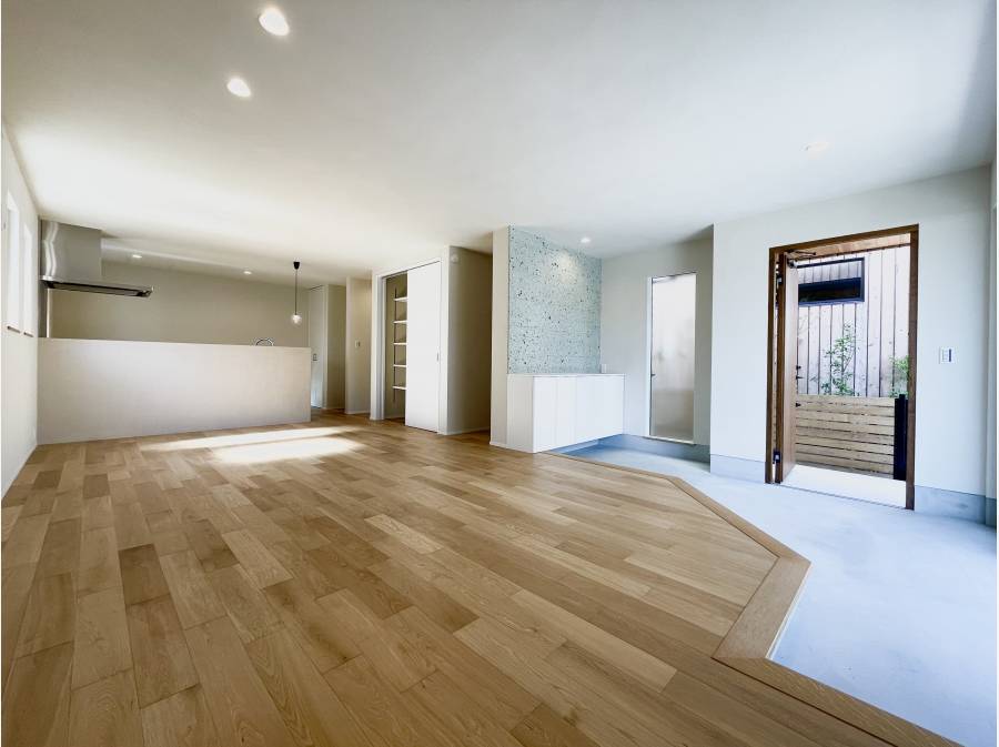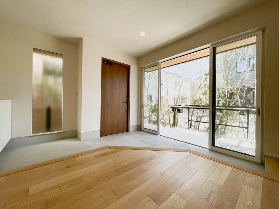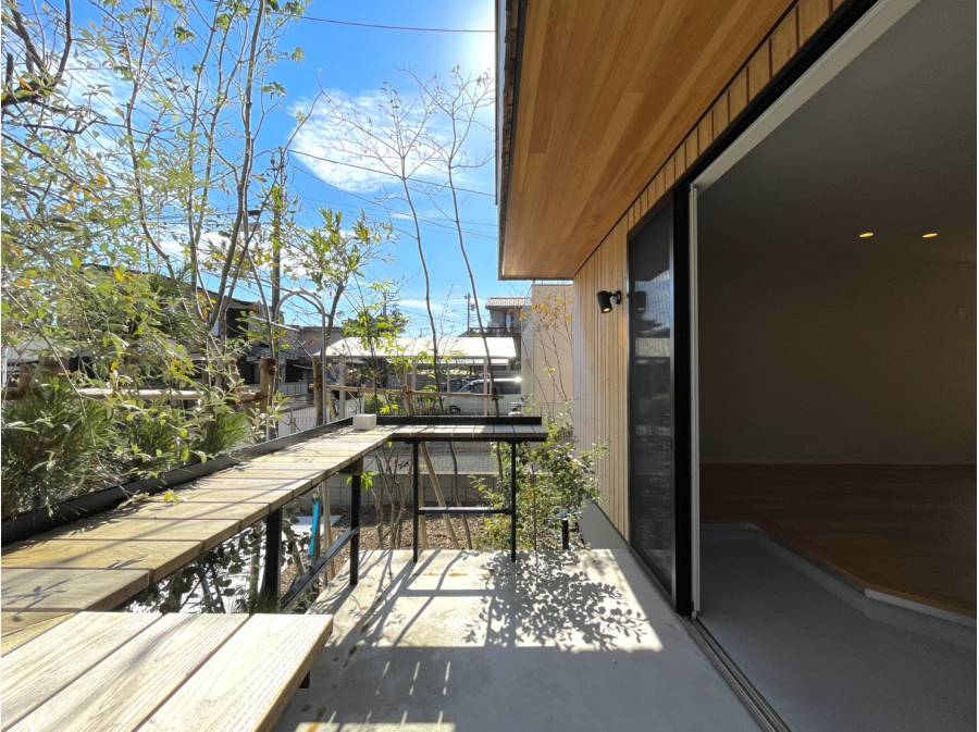 建物は南東向きで陽当たり良好、玄関土間スペースから続くテラスには心地よい太陽の光を感じながらおくつろぎ頂けます。