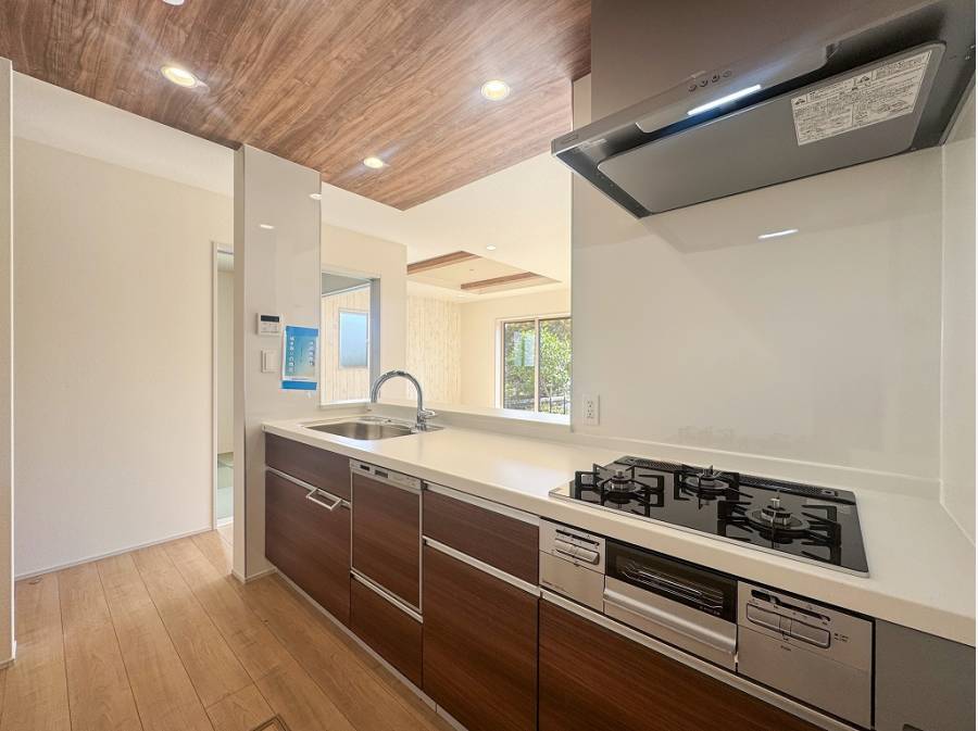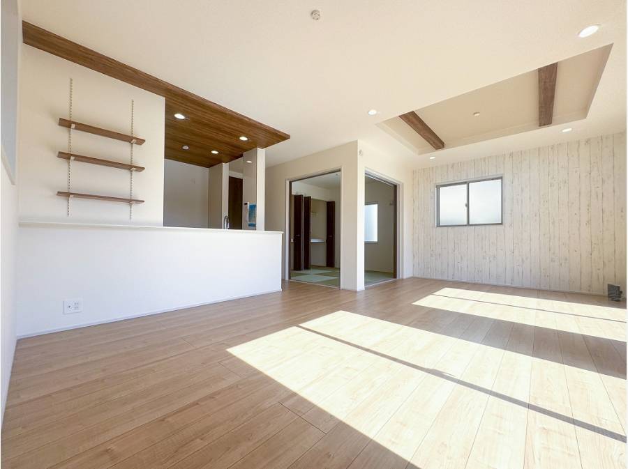 キッチンやリビングの天井部に動きをプラスしたお洒落なLDKに仕上がっています。