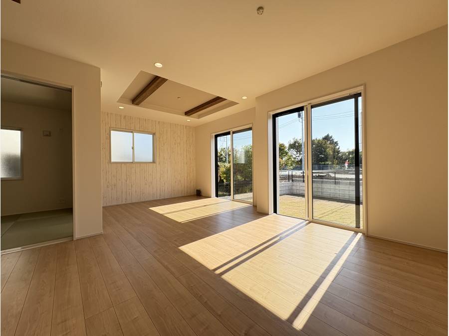 どちらの棟も、ご家族が寛ぐLDKには、空間に開放感と上質な印象を与える「折上天井」を採用。
