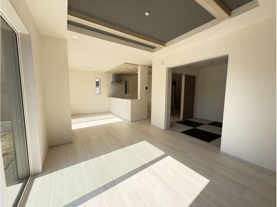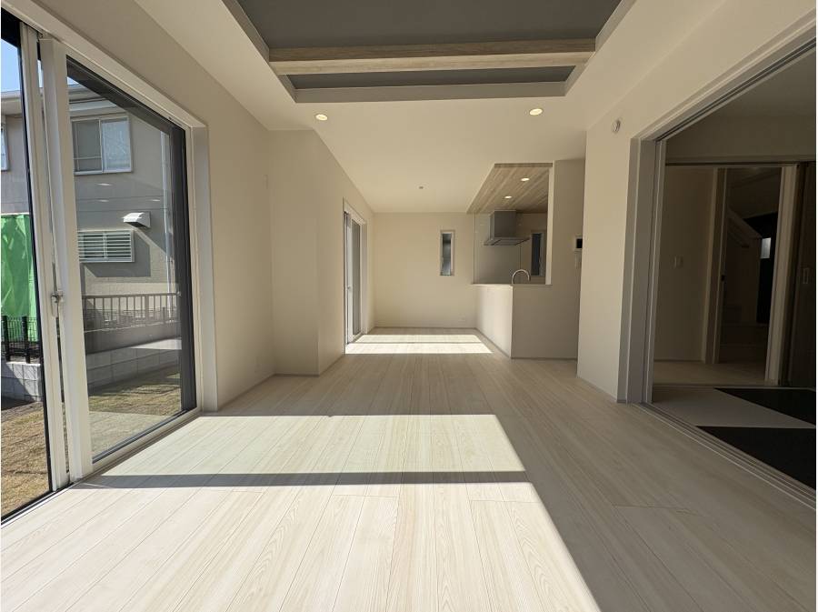 どちらの棟も、ご家族が寛ぐLDKには、空間に開放感と上質な印象を与える「折上天井」を採用。