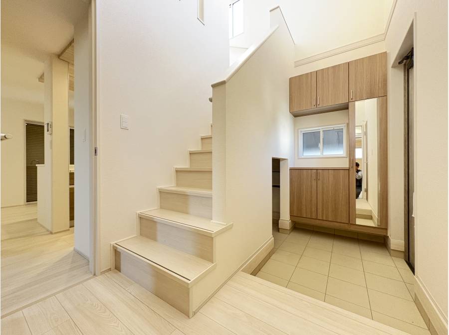 間取りは、ゆとりの4LDKにカースペース2台分を確保 。玄関には、靴やアウトドア用品もすっきり収納できる土間収納を設けるなど、暮らしやすさを考えた設計が光ります。