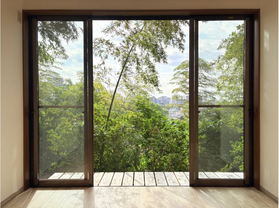 周囲を豊かな緑に囲まれたこの住まいでは、四季折々の自然を感じながら、穏やかで非日常的な暮らしを楽しむことができます。