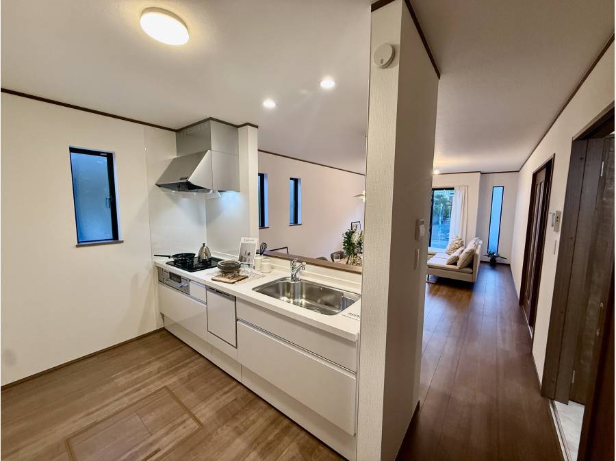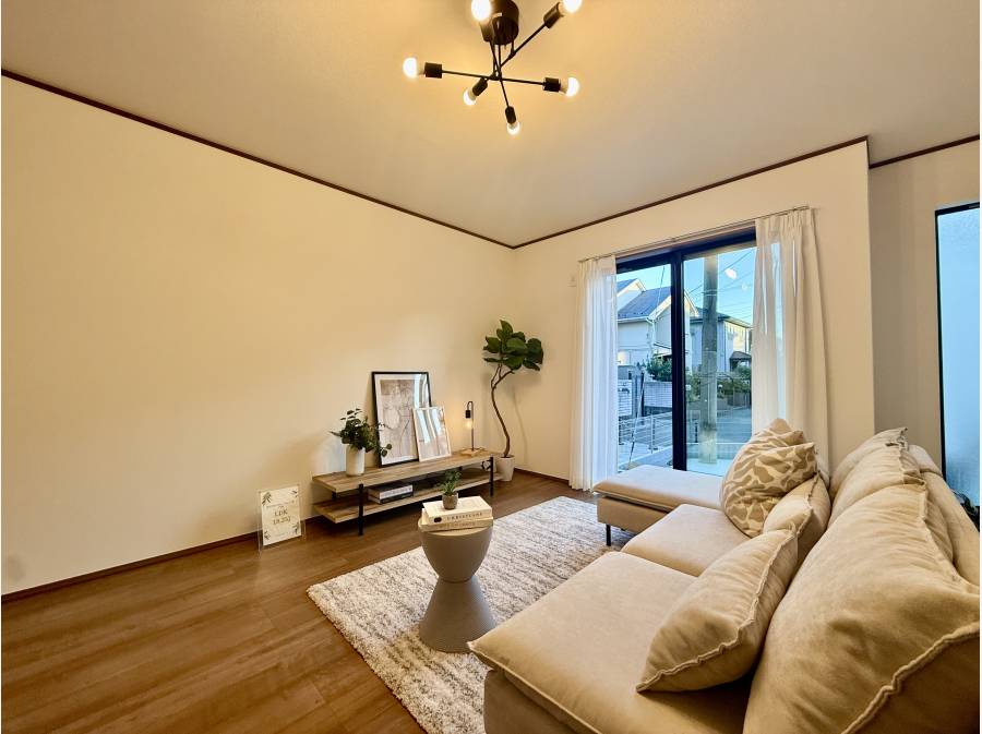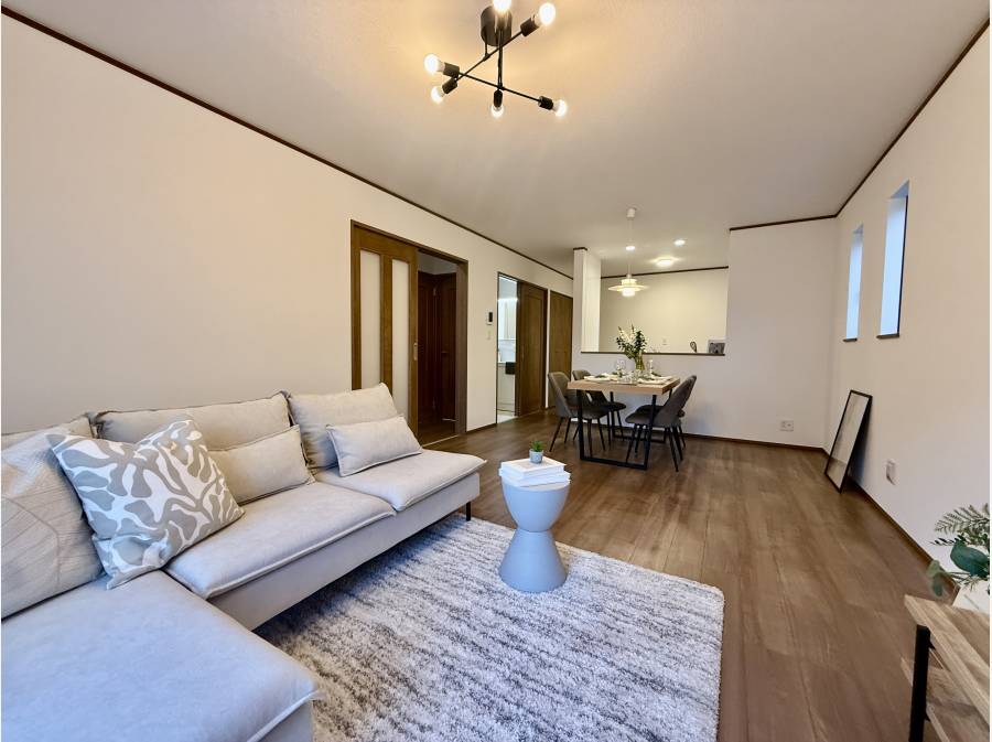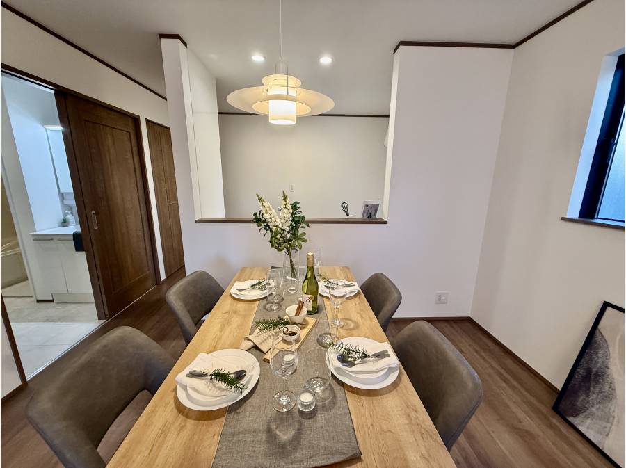 18帖超のLDKは、陽射しが心地よく差し込み、家族が自然と集まる開放的な空間に仕上がっています。