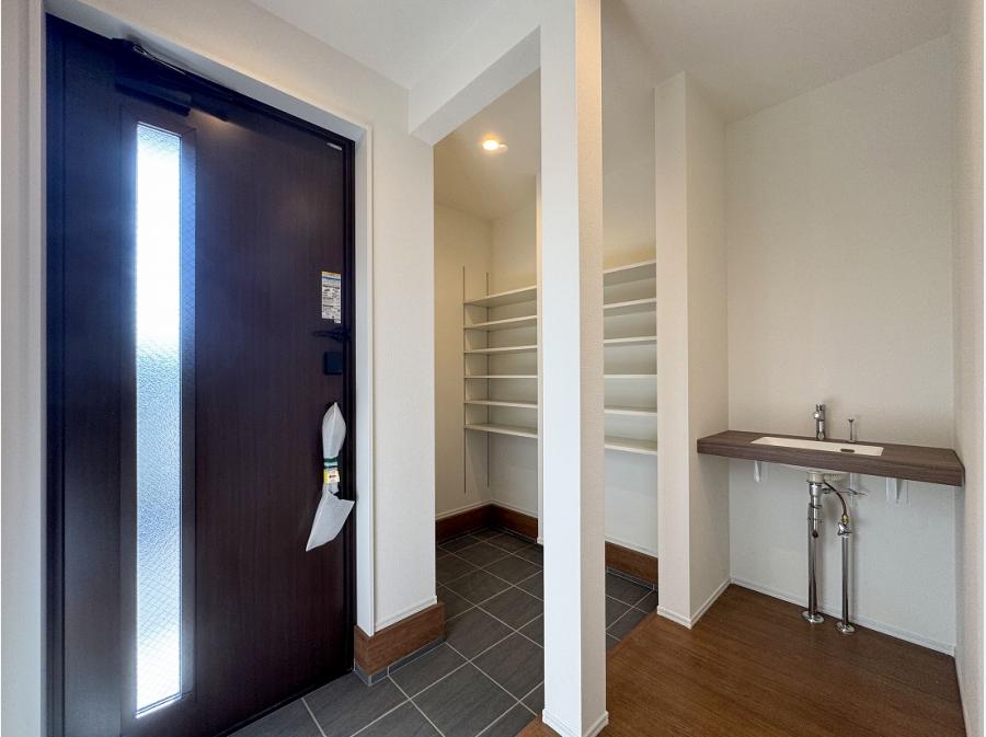 玄関には使い勝手のいいシューズインクロークやウェルカムシンクを備えました。