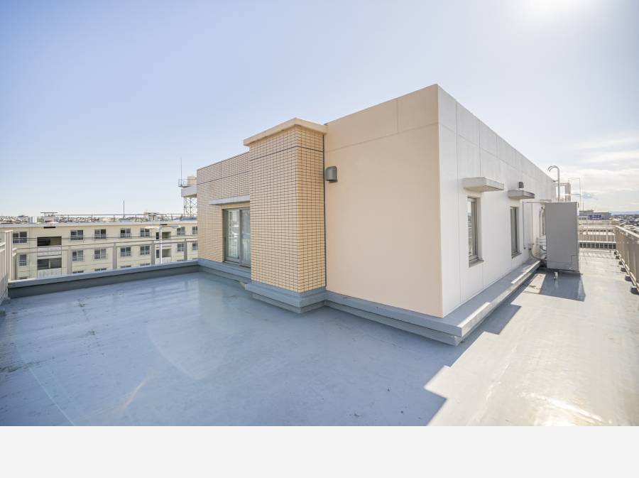 専有面積はゆとりある102.16㎡、さらに61.43㎡の広大なルーフバルコニーを備えています。