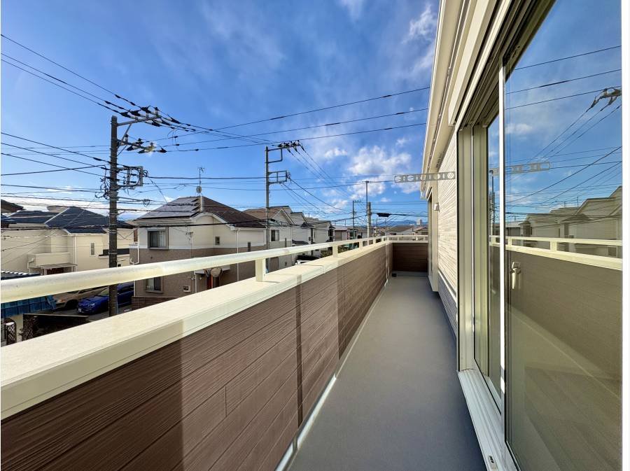 2階のバルコニーからは、西側に広がる美しい山の稜線を楽しむことができます。