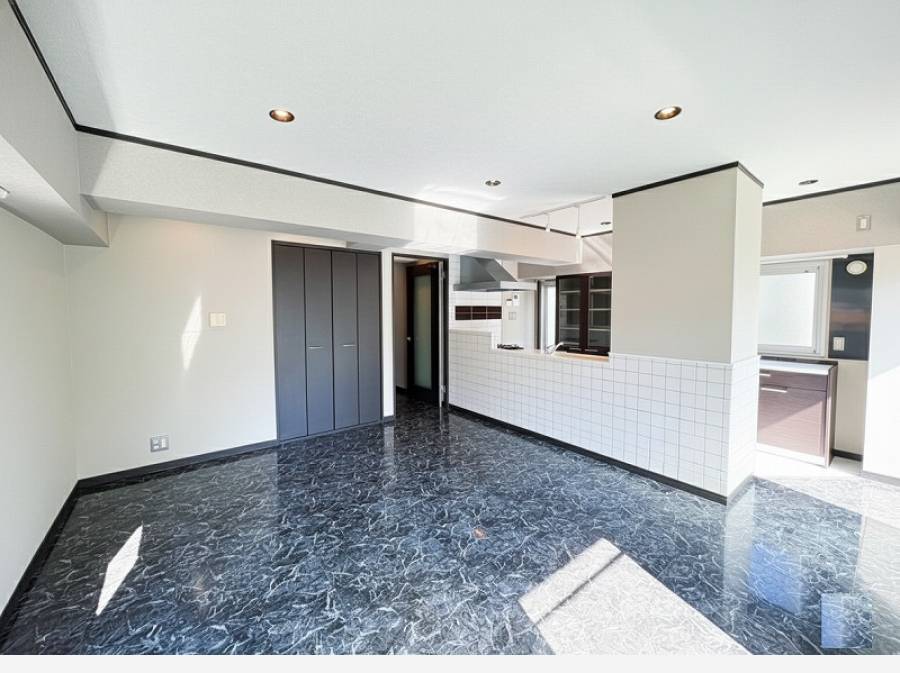 令和7年10月にリノベーション済み。シックな床材と白を基調とした洗練された空間は「ホテルライク」な仕上がり。13帖の広々としたLDKには上質なキッチンが調和し、開放的な窓から柔らかな陽光が差し込みます。