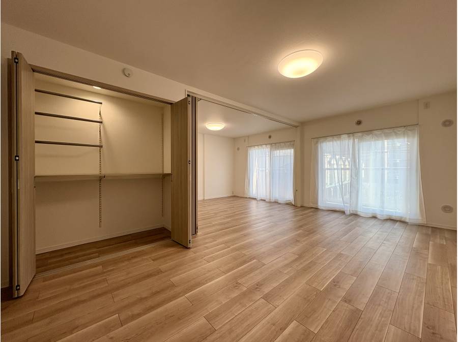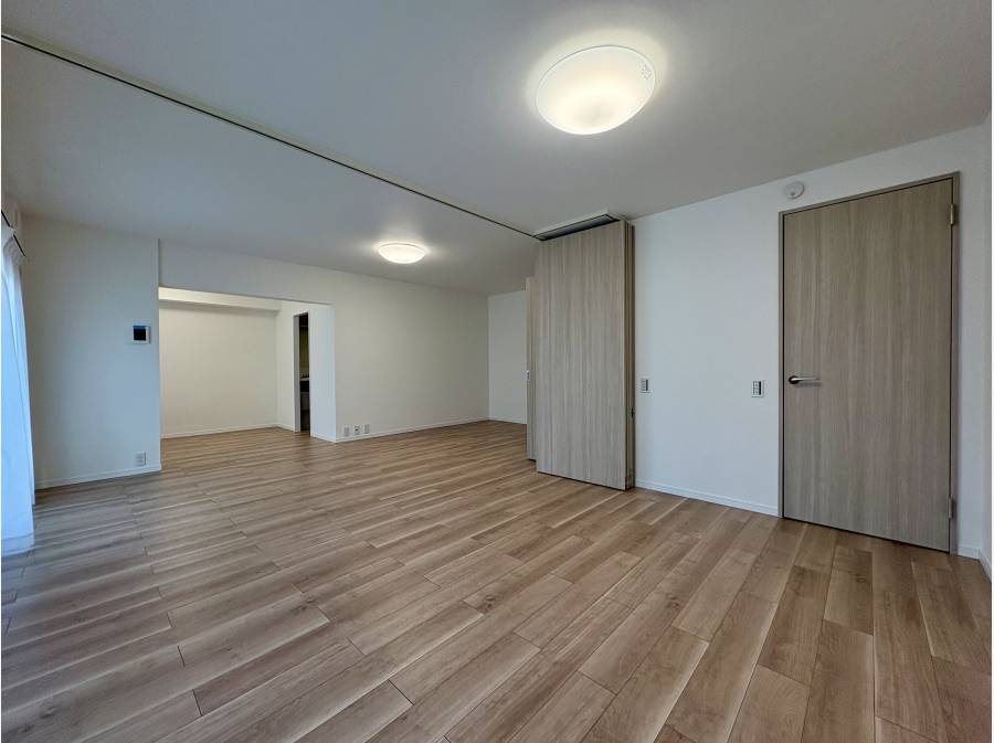 約17.5帖のLDKは、可動間仕切りを開放することで隣接する洋室と一体化し、さらに広々とした空間として活用可能です。
