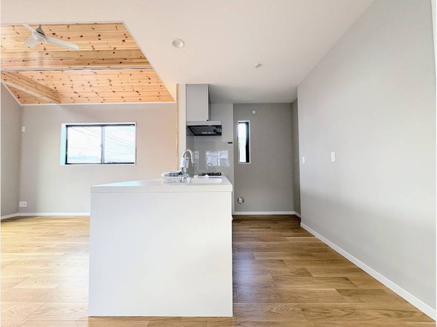 この物件の特徴は、吹き抜け天井を採用した約16帖超のLDKです。広々とした空間に天井が高く抜ける設計で、実際の広さ以上の開放感を感じられます。光と風が心地よく通り抜ける、明るく快適なリビングでくつろげます。