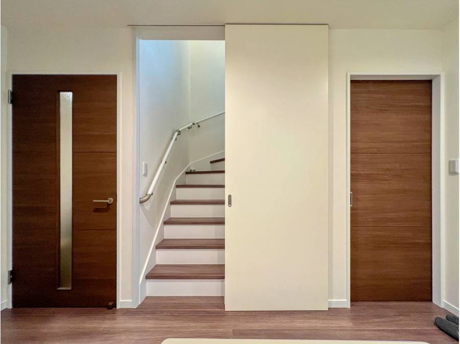 玄関横にはゆとりあるシューズクロークを配置。リビング・ダイニング・キッチンには床暖房を備えています。