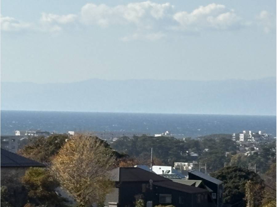 片瀬山の高台で、海や富士山、江ノ島、烏帽子岩に丹沢が望めます