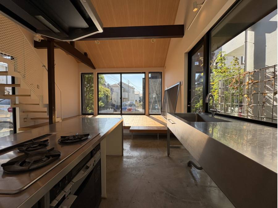 無垢材が魅力のオシャレな邸宅は海外風の業務用キッチンが特徴。屋上からは富士山と江の島を楽しめます。