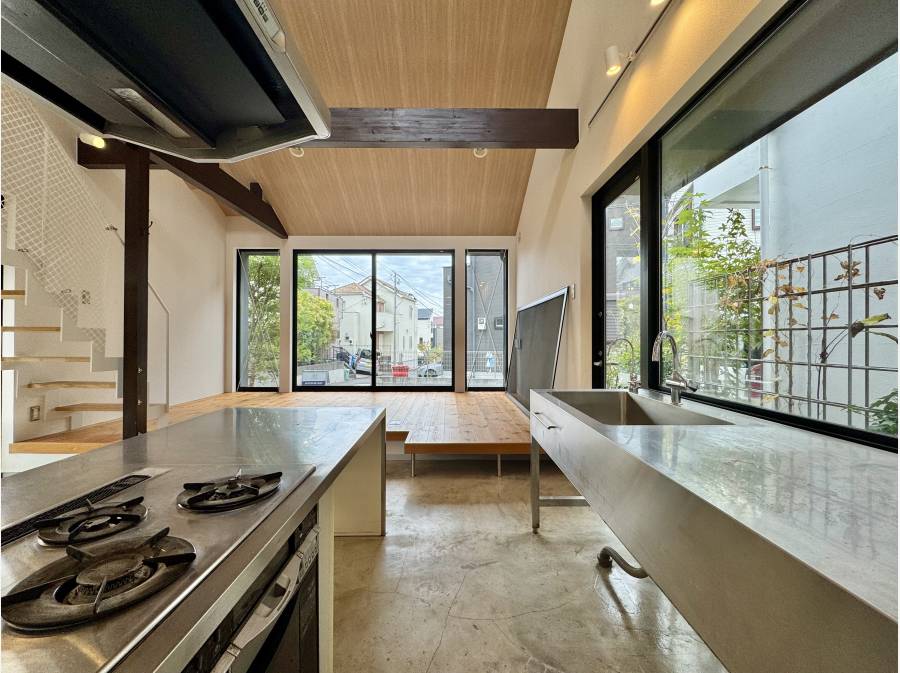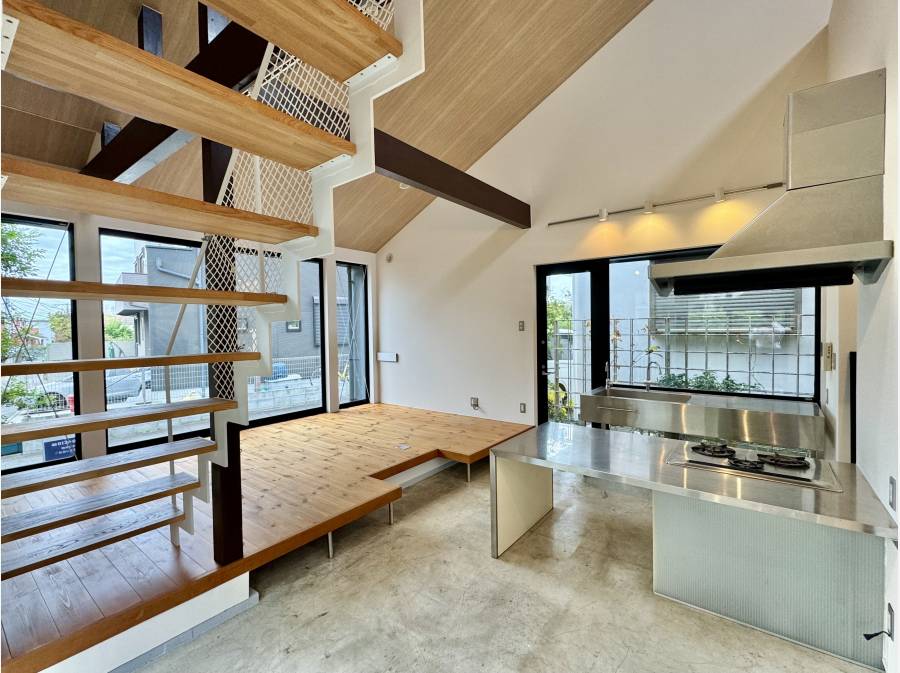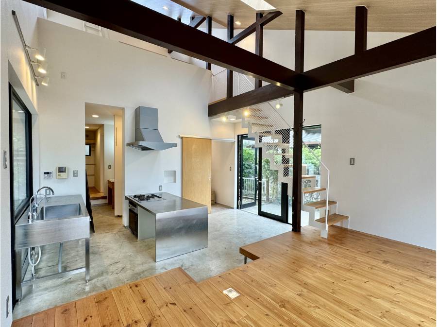 江ノ島電鉄「江ノ島」駅から徒歩7分。片瀬の閑静な住宅街に佇む、光と開放感に満ちたデザイナーズリフォーム邸です。吹き抜けのLDKには大きな開口が設けられ、無垢フローリングが心地よい陽光を柔らかく反射します。休日は屋上バルコニーに椅子を出して、富士山を眺めながらコーヒーなんてのも!間取り2LDKタイプで事務所やセカンドハウスなどにおすすめです!