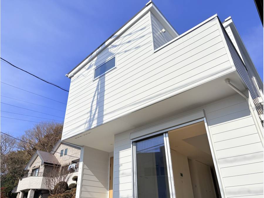 南向き角地の新築デザイナーズハウス。吹き抜けリビングが特徴の3LDK。
