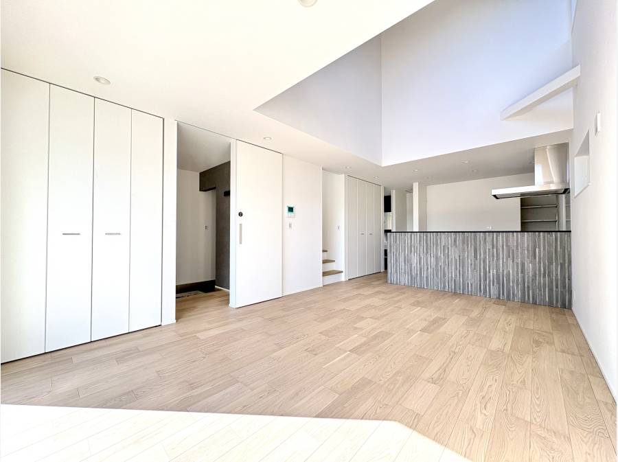 室内は、約17.5帖のゆったりとしたLDKを中心に、約5.2帖分の吹き抜けを配置。